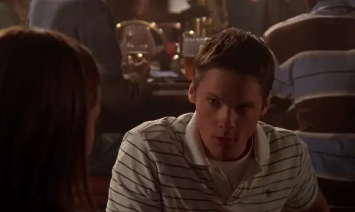 Qualche episodio più avanti (S4E21) Rory conosce Graham Sullivan con l’aiuto di Emily. Lui la invita ad uscire insieme ai suoi amici, la serata diventa molto strana, resta da sola e lei chiama Dean. Chi ti lascia da sola in un bar? 🚩
